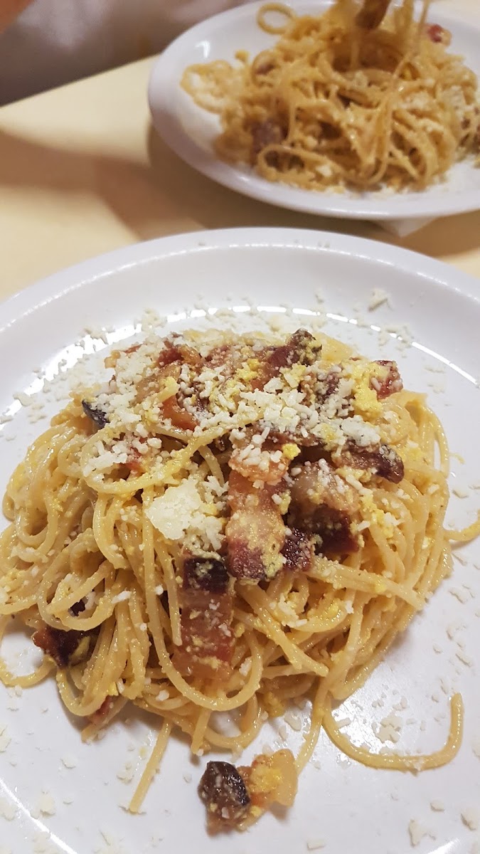 Domenica scorsa, dopo una bella passeggiata per Monte Compatri, ci siamo fermati a mangiare in questo ristorante che resta un po' nascosto rispetto alla strada. Il locale però è ben messo in evidenza grazie all'insegna all'inizio del vicoletto. Quando siamo arrivati non c'era ancora nessuno perché era presto e il personale ha potuto dedicarci qualche minuto in più per illustrarci i piatti tra i quali potevamo scegliere. Non abbiamo avuto un menù cartaceo ma per noi non è stato un problema, abbiamo preso l'antipasto di salumi e formaggi molto buoni e saporiti. A seguire i rigatoni con la pajata, veramente gustosi e per secondo l'abbacchio con contorno di scarola e patate ripassata al pomodoro. Piatti semplici, tipici della tradizione romana, proprio quello che cercavamo in una tipica domenica d'ottobre. Abbiamo preso dei piatti più semplici per il bambino, come una pasta al pomodoro e scaloppina limone. Conto nella media, non ci lamentiamo.